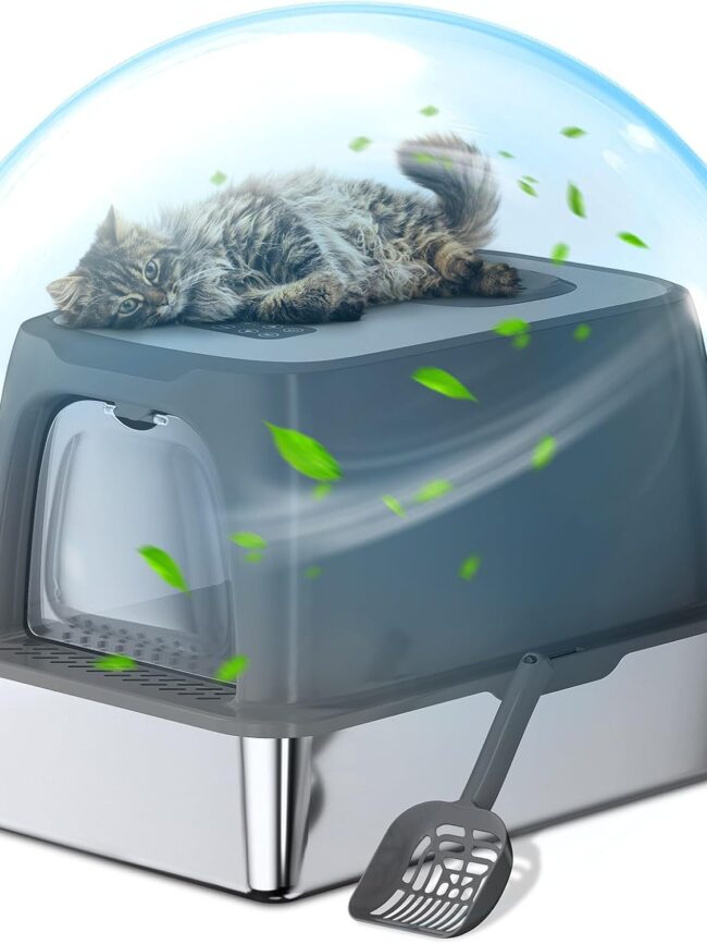 Removes over 97% of Odors: Equipped with an advanced deodorizing system, the stainless steel litter box effectively eliminates more than 97% of odors. Say goodbye to unpleasant odors and fill your home with fresh air.