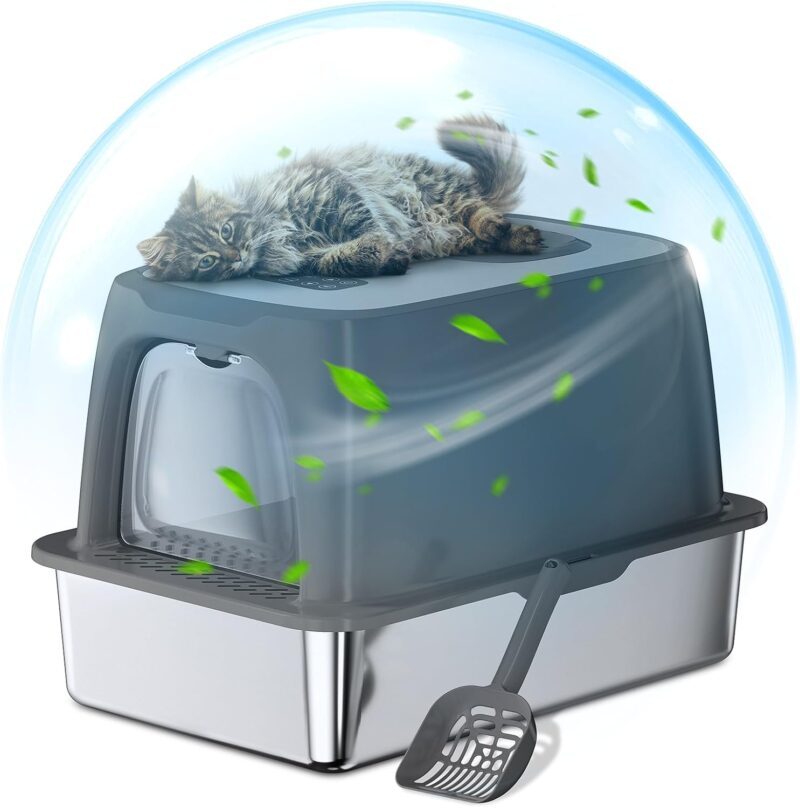 Removes over 97% of Odors: The stainless steel litter box is equipped with an improved deodorizing system, eliminates more than 97% of odors effectively. Don’t worry about unpleasant odors anymore, just enjoy the fresh air anywhere.
