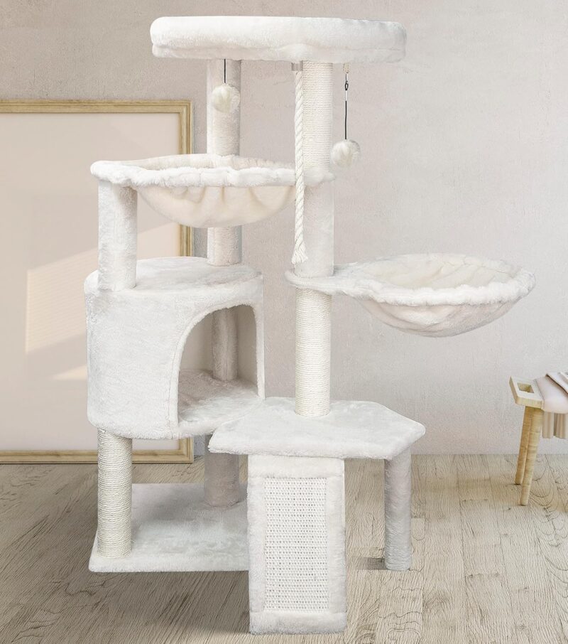 Three Layer Cat Tree with Cat Condo Scratch Pad and Two Hammocks,Beige